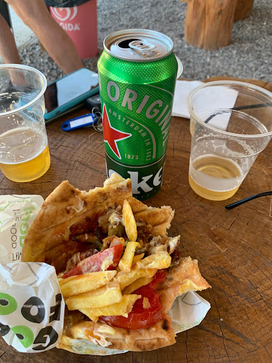 By far the worst pita gyro in the whole island so far. Rude person making the food, no care about the customer's complaint. The pita gyros we had were small, no salad whatsover and when I asked he said he didn't have it. A minimum amount of meat. The other bad thing is that there was no price listed and when asked by voice he said 4.50 euros each (!), which is the most expensive far asked so far, even more than good restaurants with a good view on the sea. This business is basically a trap, and they seem to change to the prices according to if you are a tourist/foreigner, with no care to the food they provide. You can find much better places and better food at lower price, so avoid this at all costs! The picture shows my pita gyro after a couple of bites as I realised it was...