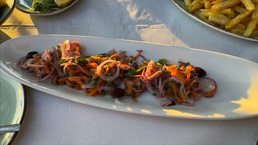 Read moreBeautiful place and the food was ok, pretty standard for a restaurant that caters fish mostly. I will comment though for the service. They only care about the big spenders, old pensioners, that they cater for, looking for the big tips. We have spent for 2 adults and 1 kid around 160 euros, we were seated and "forgotten" under the rock while the owner and the waiters were running only for the tables with old tourist that were ordering lobsters and bottled wines. The attitude was horrible. Classic wanna be posh restaurant, which in reality used to be a really nice tavern back in the days. We will never go again there. I rather go and spend my money in other taverns and restaurants with an amazing selection of local dishes and with a friendly service, rather to go to restaurant that pretends to be something more than what it really is. Shame for the greek hospitality, and a joke of a service. Very low standards for "a posh restaurant" of it's kind. The only thing it was left for is to enjoy was the rock and the beach that it was...