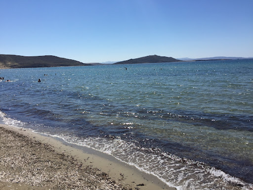 Quiet beach with restaurant down a dirt road. Follow the signs toward Plaka, but pay attention for the little signs for Saravari beach bar and apartments. Really easy to miss. If you get to Plaka, you've gone too far. 5 minutes down a dirt/gravel and you've made it. Plenty of umbrellas and a little surfing hut for wind or kite surfing. The beach bar has a restaurant style menu for bigger meals beside club sandwich. Super fresh and delicious salad with souvlaki and drinks.