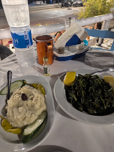 We ate here most frequently during our three week stay on Leipsi. We tried many dishes and not one was even mediocre. The goat in red sauce is outstanding, flavorful and very tender. The lamb chops were cooked to perfection. The Dakos salad is huge, easy to share for two, beautifully presented, fresh and flavourful. Goat chops were nice, χωριάτικη was fresh and tasty, and the house wine was quite good, both red and white. Lovely staff, professional and attentive without being intrusive. Great view of the sea and island. Most evenings we ate before I remembered to take pictures the food was so appealing. The χόρτα and σκορδαλιά were both also very good. Indoor and outdoor seating choices. They accommodate large parties and children efficiently. Parking nearby. Many, many vegetarian options on the menu. One tier of seating is at street level, so wheelchair accessible....