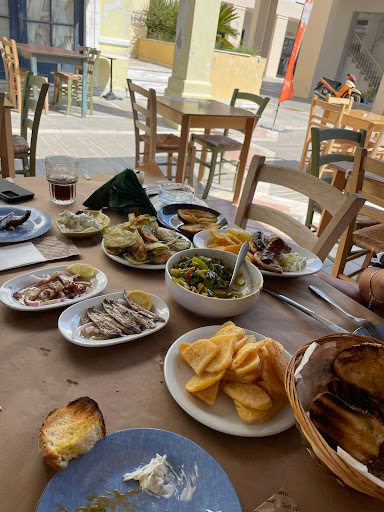 First of all, don’t order all mezes at the same time, they bring you everything immediately, thus it gets cold. I think the restaurant is overrated. The auberginedip was nice, and the cold red housewine too. The calamari were chewy (more than normally) and not spiced with anything and no dip with it, the fries appeared to be thin slices of potato, tasting a bit like plastic . The porc was ok. The cook sat outside after making our diner and was suffering from a cold I think, he constantly turned up his nose loudly, which was at least very unpleasant, the food was less tasty because of that! After diner, we had a long walk to ease our stomaches, but nothing helped, our stomaches were upset...