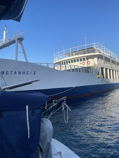Read moreBibi, I think was the hosts name ? a great giant of a man, he calls (very loudly) your boat in from the shore especially if its a 43' with 8 crew!!! First time we had done a Mediterranean mooring on a Lazy Line and he was brilliant at helping us. So thanks for that. Moorings which include fresh water and electric are free if you use the spacious Taverna (of course) a no brainer! there are good showers etc.,
