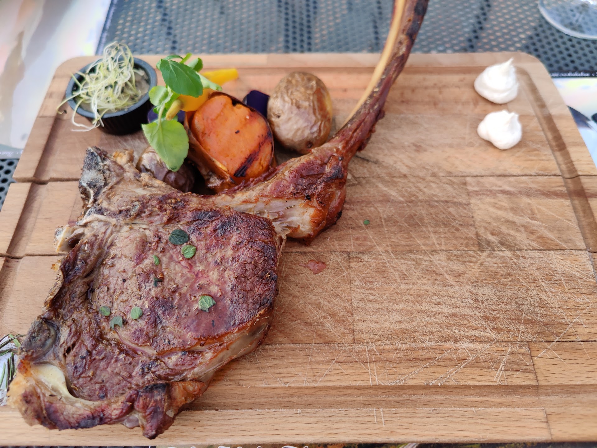 My hotel's front desk recommended this restaurant. We got in town in the afternoon and thought we'd grab a quick lunch before visiting a monastery. A vivacious lady came to talk to us. Apparently nearly nothing on the regular menu was available except for soups, because "so many people" came. My husband wanted Moussaka and she said the regular one was out, but she had some other Moussaka, "10 euro, so good". I was going to try the local specialties but sorry, no black pig, no beef, no lamb entries, only steak and chicken from a small piece of paper clipped to the menu. The "chicken with pasta" was 28.5 euro, definitely a very high price for such an item, even if just compared to the multiple beef, black pig and lamb dishes from the restaurant's own menu. No matter, that's the only few things available so I order it. After a while, our food came. I could not believe how small the portion was. Literally a small piece of chicken rolled into something like 2 inches long, less than an inch wide? A few strands of pasta, and a swath of some puree. Most appetizer would be bigger. The taste? On the salty and dry side for the chicken. Average at best for the whole thing. When we finished, no one was insight so my husband went in and told them we were ready. They said yes sir but no one moved. After waiting for another bit, we decided to go in to pay instead of wasting our time waiting. This time they said the Mousska was $25. Long and short, they eventually charged us $15 for it. All in all, like some other reviewer said, their prices are 3-4 times higher, while portion is 3-4 times smaller. And like some other reviewer said, they felt robbed and abused. That was our...