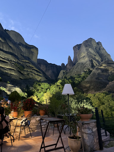 Read moreWe arrived today, 15.06.2024, in the evening, by pure chance, at this restaurant. We are staying at Chrysorama Rooms, we were on a "sunset tour" for about 4 and a half hours, and we were looking for a tavern close to the accommodation. We found "Meteoron Panorama", -pretty good reviews on google. We had seen it as a location the day before, it was right under the rocks that we can see from the balcony... We said: "let's see". Here, the surprise: the terrace, which you cannot guess from the road, offers you a unique view. The rocks in question, which we could see from the balcony and thought were lit by the municipality, are lit by the restaurant. Everything denotes elegance and good taste, but in a pleasant way, which does not make you feel embarrassed that you are coming from a hike, in a dress, with sneakers and a backpack. Monika appears, an exotic, extraordinarily pleasant presence, who convinces us to take the fried feta with watermelon, slow-cooked lamb and we also took a beetroot salad. I know how to cook, but their dishes are original, some combinations that, clearly, surprise you. The price are reasonable, but obviously a bit bigger than at the tavern, all in a Hollywood atmosphere, with the rocks falling on you. We will definitely come back when we pass through...
