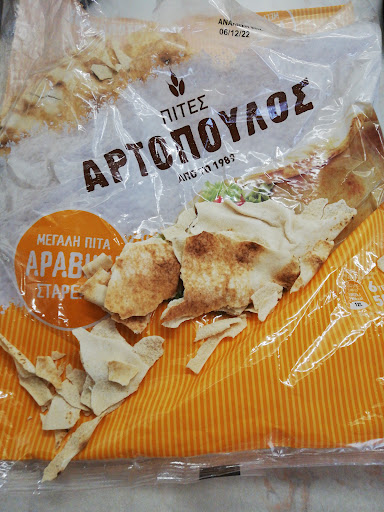 Αυτό που βλέπετε στη φωτογραφία είναι μετά από μία μέρα στο ψυγείο προσπαθώντας να σφραγίσω όσο μπορώ τη σακούλα η οποία δεν μπορούσε να σφραγιστεί.. Ωστόσο Εκτός του ότι η πίτα έγινε θρύψαλα και με το που τις πήρα από το μάρκετ δεν έμεινα ευχαριστημένος γιατί με το που ξεκίνησα να φτιάχνω μία αραβική πίτα πάλι θρύψαλα έγινε όσο απαλά κι αν την τύλιξα. Δηλαδή πραγματικά με διαφορά η πιο μάπα πίτα. Απλά επιβεβαιώνομαι Για ακόμη μία φορά ότι δεν αξίζει για κανένα λόγο να πάρω αραβική πίτα και η τορτίγια θα ζει και θα βασιλεύει Γιατί η ελαστικότητά της είναι αυτή που θα μπορέσεις να την τυλίξεις και να φτιάξεις την πίτα σου και να τη φας σαν άνθρωπος εγώ την πήρα την έφτιαξα ήταν θρύψαλα στη δουλειά και δεν μπορούσα ούτε να τη φάω και από τα νεύρα μου την πέταξα κιόλας δηλαδή είχε διαλυθεί όλο το υλικό κάτω στο αλουμινόχαρτο. Τι να σας πω τώρα άμα πιστεύετε ότι με αυτό τον τρόπο εσείς έχετε αξιόλογα προϊόντα και αξιόλογες συσκευασίες προϊόντων, Μπράβο Καλή συνέχεια εύχομαι στην...