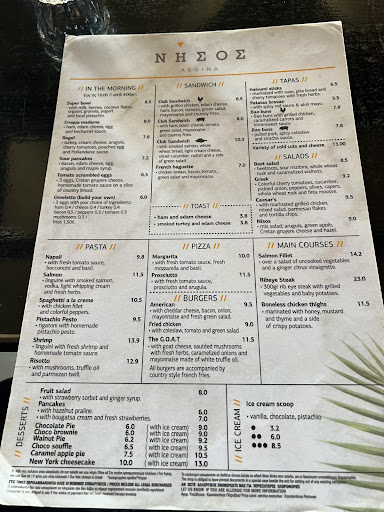 One of the best features of Nisos Café is its efficient air conditioning system, a true blessing during the hot summer months. Whether you’re stopping by for a quick coffee before catching a ferry or spending a few hours enjoying the view, the cool air ensures a pleasant experience no matter the time of day.