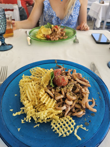 We firstly ordered a basket of bread and olives, the bread definitely was stale and toasted slightly to perhaps try and hide this. At 7 euro for the bread we found this disgraceful! Next we had the pesto calamari which was also not very fresh at 20 euro this was another rip off! We were given a bottle of artisan water whilst locals were given standard water, another sly attempt to rip us tourists off.