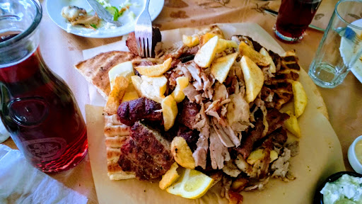 Was greeted by owner while looking at menu. He had this wonderful personality and invited us in. He reviewed the menu and made some suggestions. The three small plates he recommended and red wine were all great!! He presented us with a honey cake with candied cherries and raki making this one of our best meals in Greece! Could not beat the price, ambiance and...