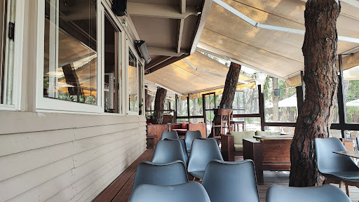 It is a very rare place because of its location, it is surrounded by pine trees with no cars and tables stand just among the trees. If it is chilly you can sit inside. It is used lots of wood in the interior, it has books you can read and the atmosphere is very cosy. The food is simple like pizza, burgers, salads. You can have a coffee, juice etc. Ideal for kids, lot of place to run and explore the nature. It has a big...
