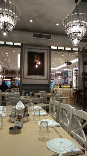 Huge space, neat and bright. That's the first impression from when you enter this place. The food is alright. Ordered the caesar salad (served with Arabic pita crumb, and chicken gyro), pork pita gyro and wine. The gyro maybe needs a bit of improvement though, it should be juicier (not rather dry), but the taste was fine. The salad was good and tasty. At the end of the meal, we were served free sweets: ekmek and chocolate pie. Very good both of them!