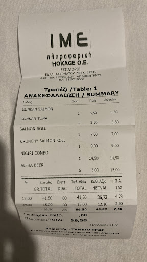 Read moreWill never eat anything from here again.... Did an order in E-food boxes were 90%rice and sprinkled with our order. The soup was the water of boiling the uncooked veggies, no taste, no spices nothing just water. Only thing edible in the order were the sushi rolls, but we had to order again to have dinner.. A disgrace! I don't recommend if you want to eat something more that the basic...