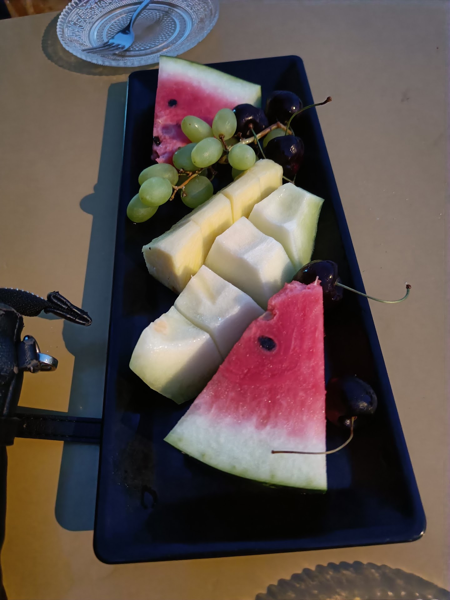 The food was mediocre at best. At the end, they brought us a slice of watermelon âon the houseâ (which we hadnât asked for). I declined â beer and watermelon is a combination best left to those conducting digestion experiments.