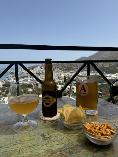 An absolutely delightful evening. A short uphill walk from the centre of Elounda (some customers took a taxi). The way is signposted and the effort is well worth it. The views are fantastic. The welcome and the service were exceptional. The host was more than generous, not only with her time but also with little tasters and a couple of aperitifs. I tried four of the numerous ales available while my wife had sangria, all were good. We also ate while we were there and the food was delicious. I must admit to getting carried away with the ordering, at which point the waiter exclaimed "No, too much" and advised me to order less. We had a selection of dishes, the chicken wings were wonderful as was their own recipe dip which came with it. Make the effort,...