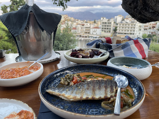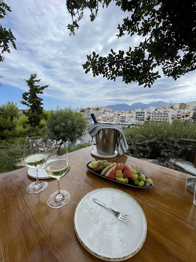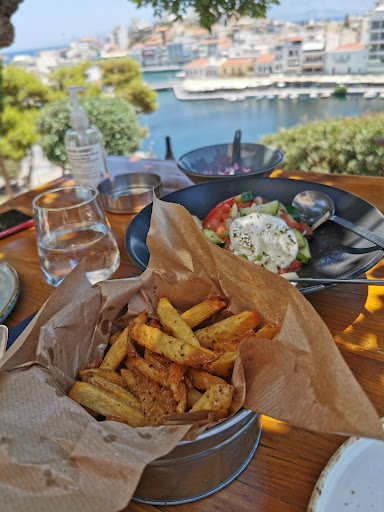 GO here for lunch - the staff is relaxed, there seems to be a better mood and we had just one waiter to deal with - even if someone else would occasionally bring food or drink. Friendly staff, nice location and delicious food - its difficult to ask for more on top of the hill overlooking the basin of Agios Nikolaos, this is an excellent choice for a dining place with a bit of natural ventilation on the hot days and a wonderful view.