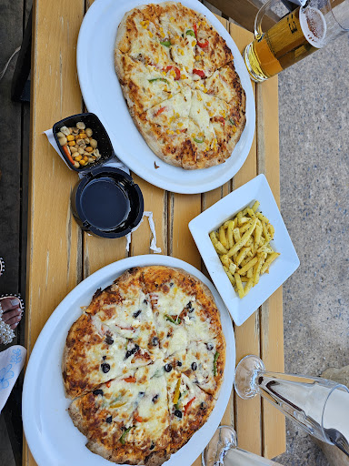 Read moreWe came here around 6pm on a weekday. They serve food, and have a snack menu too. We ordered two pizzas. The pizzas were huge! I was so full afterwards, and the pizzas were only approximately €10. Definitely a bargain meal. We also had a coke and a vanilla milkshake, which was very nice. The view is nice because you sit facing the sea. You can sit on ground level or higher up. They also serve cocktails and other alcoholic drinks. They stop serving food just before 9pm on some...