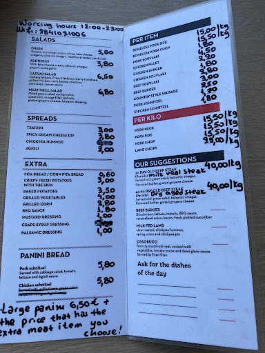 People often talk about "try and eat where the locas eat, not where the turist eat". This place is truly the first. A real grill food place, where the portions are based around meat (from the bucher, literally next door!). I personally loved the system where you just tell the amount of meat you want and they grill it. Simple and delicious! Also the greek salad and tzatziki souce were, suprisingly, best in town!