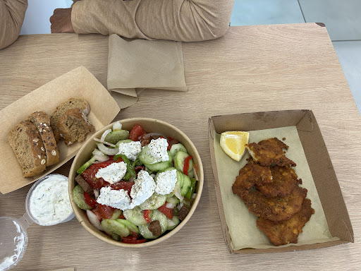 Read moreWe heard it was delicious and it truly is great food at affordable prices! Very kind staff and we felt welcomed. We will come back for the grilled corn. We tried the schnitzel and fries, tzatziki, chicken souvlaki and Greek salad. We wish they were in...