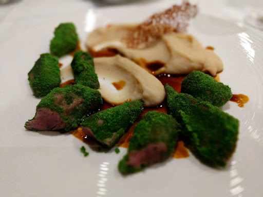 Read moreFood wise: They bring you bread at the beginning regardless if you agree and charge 2.20 per person. The "king scallops" were tiny and they added peanut butter which ruined the taste of the scallops. Who is crazy enough to add peanut butter to scallops? The lamb fillet with bean puree was decently tasteless. The bean puree was a terribly bland pairing with the lamb that also had no flavor. The lamb also had some green flavorless green dust that didn't add anything culinary to the dish. The mushroom ravioli had a basil taste that made the whole thing hard to stomach. The honey mousse was pretty good. Not too sweet. All in all, they went experimental on almost all the dishes in all the wrong ways.
