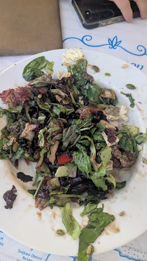 Very nice sunset view đ We had dinner with variety of fish and local wide herbs as salad. They were all delicious. The dessert made with grandma recipe is heavenly. Thatâs all Iâm gonna say;) If you prefer wine like myself, glass option was not nice so go for a bottle selection. Next time thatâs what Iâm gonna do. And a small note: one of the things I love about Greece is wherever you go they bring water to the table and say welcome. This the first time weâve been asked if we want water and then charged for it. Maybe this is some Crete thing, I donât know. At this taverna water is asked and charged also. As I said, thatâs a small note. Overall GioMa is a place I will love to come and...