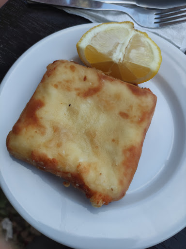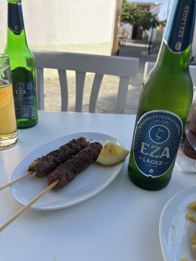 Read moreTradizionale kafeneio, posto a Kerames, sulle pendici delle alture soprastanti alcune delle piu belle spiagge della zona, dove eravamo già stati due anni fa con molta soddisfazione...di ritorno dalla spiaggia piccola di Triopetra e parcheggiata la macchina all'esterno del paese, siamo saliti a piedi verso la piazzetta centrale del paese dove è sito il locale...ci siamo seduti a un bel tavolo all'esterno, vicino alla locale antica fonte e abbiamo ordinato horta, sardine marinate, dakos, omelette coi carciofi, gli skourdoulakos (specie di lampascioni sott'olio, buonissimi...) e graviera saganaki, con pane bruscato e un mezzo litro di vino bianco locale...tutto davvero genuino e squisitissimo...offerti frutta e buonissimo raki, molto aromatico...spesa complessiva di 38€ in due, arrotondati ben volentieri a 40€...bella anche l'aria di paese autentico che si respira sostando in questa piazzetta, con i paesani che pasteggiano e chiacchierano placidamente, i bimbi che giocano all'aria...