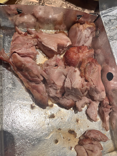 Όποιος μπορεί να διακρίνει τις φωτογραφίες,είναι καθαρά κόκαλα με πέτσα.Λιγη ντροπή δε βλαπτει.Πήγα νωρίτερα να πάρω μισό κιλό γουρουνοπουλα.Περναω συχνά από αυτό το μέρος,αλλά επειδή δεν είχα διαβάσει πολλές καλές κριτικές,δε σταματούσα να δοκιμάσω.Αποψε το τόλμησα δυστυχώς και δεν πρόκειται ούτε να το ξανακάνω,ούτε να το συστήσω σε γνωστούς.Ειχα την εντύπωση,πως όταν ζήτησα γουρουνοπουλα,θα κατάλαβαν,πως προοριζόταν για ανθρώπους κι όχι για τους αδέσποτους σκύλους της γειτονιάς. Θα έπρεπε να υπάρχει και λίγο σεβασμός και λίγο ντροπή απέναντι στον πελάτη.Σχεδον όλο το μισό κιλό που ζήτησα ήταν μεγάλα κομμάτια κόκαλο με πετσα.Αγοραζω από αλλού και είναι μισό κιλό κρέας μαλακό καθαρό και φυσικά έχω στείλει γνωστούς μου.Σε εσάς θα περνάω από έξω και θα τρέχω.Ντροπη...