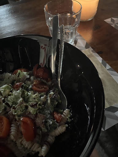 Την πρώτη φορά, πριν περίπου 1,5–2 εβδομάδες, ήμουν με τη μητέρα μου και το πιάτο ήρθε πλήρες και σωστά φτιαγμένο. Λίγες μέρες αργότερα, όταν επέστρεψα με μια φίλη μου, η σαλάτα ήρθε ελλιπέστατη: περιείχε μόνο μακαρόνια, σος, μαρούλι και λίγο μπέικον. Έλειπαν το τυρί τσένταρ, τα ντοματίνια και το ντεκόρ. Να σημειωθεί πως εκεινη την μερα δε μας δόθηκε απόδειξη. Πέντε μέρες μετά, ξαναπήγαμε. Η σαλάτα ήταν πιο κοντά στην κανονική της μορφή, αλλά και πάλι χωρίς ντοματίνια και ντεκόρ. Όλα αυτά έχουν καταγραφεί σε φωτογραφίες.