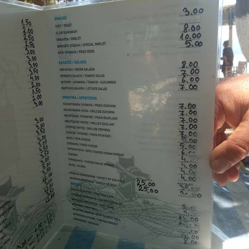 Read moreoh dear, oh dear..... absolute chaos. Too many tables ordering food, too many inexperienced waiters/waitresses. We saw what a mess they were in and just told them to bring us wine ...... it never came and after waiting over 30 minutes we left, Before we left we got a menu. WHAT PRICES! 11 euro for grilled sardines! That's crazy! Lettuce salad 7 euro, what does it have in, gold leaves? Paleros is a village but the prices here represent Mykonos! Thee stars are for...