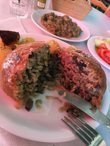 Typical old fashion Greek-Turkish restaurant. All the food is home made and was sooooooooo delicious!!! I have no words for all the staff that we’ve eating here!!! For start we have “melitzana” or aubergine salat. Aubergine on grill with olive oil and herbs. Very classic and very delicious. Additionally we order Greek salad, off corse! The masterpiece here was “ciger sarma”. Liver with rise!!! That was just awesome!!! I’ll come back here exactly for that dish!!! My girl was eating pork sarma. Another very traditional and so delicious dish. And where to eat in Greece without tsipouro :) That’s why I love Greece! Sun, good food and drinks! Thanks guys!!!! I’ll come...