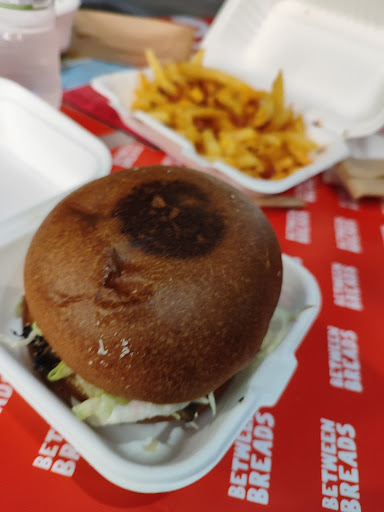 Ένα νέο μαγαζί μπέργκερ στο άνω Καλαμάκι (Άλιμο) που έλειπε. Τα υλικά είναι φρέσκα και καλής ποιότητας. Εξαιρετικές πατάτες με τσορίθο. Δοκίμασα ένα μπέργκερ μοσχαρίσιο το πικάντικο με την between breads sauce και ένα με παναρισμένο κοτόπουλο και μαύρη τρούφα. Το μπέργκερ με μπιφτέκι το προτείνουν και λένε ότι το φτιάχνουν ως medium ψήσιμο και ενώ επίτηδες είπα μέτριο και εγώ (γιατί σε λίγα μαγαζιά πετυχαίνουν το ψήσιμο και για να μην ξεφύγει) μου ήρθε θεοστεγνο και over-cooked. Αυτό επειδή το δοκίμασα και σκέτο για να δω τη γεύση του. Μέτρια ποιότητα κρέατος, αλλά γενικά μέσα στο bun όλο το πακέτο ήταν νόστιμο. Το μπέργκερ με κοτόπουλο ήθελε επίσης λίγο λιγότερο ψήσιμο καθώς είχε αρπάξει το πανάρισμα και ήταν σκληρό στις άκρες του. Κατά τ' άλλα το κρέας κοτόπουλου ήταν νόστιμο και η σως μαύρης τρούφας και το υπόλοιπο bun ήταν εξαιρετικό. Γενικά το μαγαζί έχει προοπτικές (δεν ξέρω αν έχει κάποια σχέση με το talking breads στα Εξάρχεια (ίδιο σχεδόν όνομα και γραμματοσειρά) αλλά αν το πάει προς τα εκεί θα έχει εξέλιξη). Χρήζει βελτίωσης αλλά είναι καλό μέσες άκρες και θα ξαναετρωγα να δοκιμάσω και τα υπόλοιπα πιάτα τους.