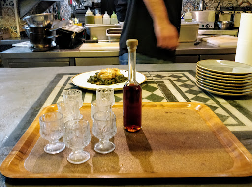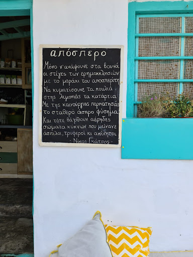 Read moreThe restaurant is located in a secluded and tranquil square in the beautiful chora of Amorgos. The tables are arranged under some trees that embellish the square. The restaurant propose a modern cuisine inspired by some tipical plates or ingredients of the greek tradition. We particulary appreciated the pork and the smoked makarel with fava. The menu offered only one dessert (baclava deconstructed) but it was fine. The service doesn't match the quality of the cuisine; the staff is kind but the organisation must be improved: we received the plates in a strange order (a main course with the starters, a starter after the main courses...) and we had long...