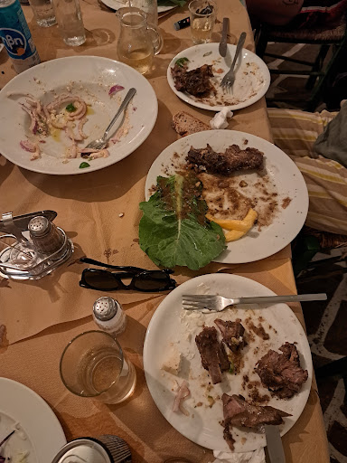 Yesterday, we had a weird experience with Marouso Tavern. One local and some friends suggest it and and 4.5 stars in google was a must after our visit in Mouros Beach. Sadly, the experience there was below expectations. The salad we ordered and the appetizers were great, but the main dishes were a disappointment. First of all, the courses came in random order, like main dishes before appetizers. Secondly, the main dish ribs were super small. Our friends showed us a photo of their dishes and were 3 times bigger. The kid (see photo) seemed good at first sight, but we couldn't find any meat but only bones. Also, the bone small parts were all over the fried potatoes, so you had to spit bones after every potato bite. Also, the fried potatos we ordered never came. In addition, they were arguing in their kitchen probably because they could not keep up with the orders. (Our dishes came a little late also). One friend, who is also local, said after our visit that in August they make the...