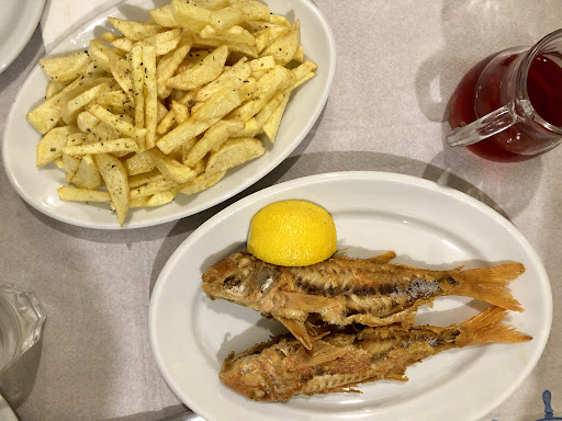 Read moreIt's a family run fish restaurant where you get to choose your own fresh fish from the fridge display, after which it is grilled and served. The outdoor seating balcony overlooks the mountains and sea, though only visible if eating in the daytime. The owner's daughter serves the food and communicates with the international visitors. This island of Anafi only has one town with a total local population of 300, so relies on tourism for it's main source of income. It's extremely attractive visually, so visiting artists, writers and photographers will have a feast...