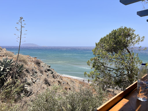 Wow. A sandwich…That I came back for 3 times. This restaurant/bar is no short of spectacular and to speak plainly just has the best vibe. The location is prime with incredible views of the movie set worthy blue beach and dry cliff landscape. There is a plethora of seating all around with great views and I must say the atmosphere here is impeccable. The food and drink is sensational, the salads fresh and light with hints of citrus, coming with an overwhelming sense they’ve been made by someone who loves the food they create. I tried the quinoa salad and it was remarkably summery and hit all the textural sweet spots for me, I highly recommend for a light lunch. But I have to talk about the sandwich. My party tried the 3 sandwiches they have to offer and were blown away by the incredible simple and delicious flavour of each (2 with meat, 1 vegetarian). A special mention to the humous sandwich which was the favourite (we decided with much deliberation and struggle). It comes with obviously a delicious humous, fresh tomato, leaves, flavourful and soft bread and pickles that leave your stomach wanting more. Although it sounds simple this sandwich was by far the best I’ve ever had and if I’m describing it right you can only imagine the others delectable flavours. I’m kicking myself I didn’t have time to try their pizzas. If you want incredible views, a rewarding meal after a swim and polite staff; The mule and The pig should be your next meal in Anafi. 😄 Just a quick warning the full menu becomes available at 2, a later...