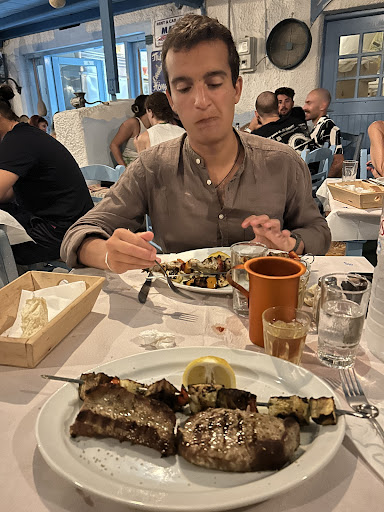 Read moreDuring my stay in Anafi, To Steki is the place I visited the most for dinner. There are always many people there after 8 p.m., but a vacant table is nevertheless easy to find. A handwritten bill presents the 'special dish of the day'. Both fish and meat are on the list, in addition to a good many side dishes, salads, rice, beans etc. For drinks you can have beer or wine from Anafi or Santorini. One of my best options so far, was tuna fish and vegetables souvlaki style. Having finished your meal you may be happy to be awarded a sweet (or 'spiritual') small surprise. Paying with card...