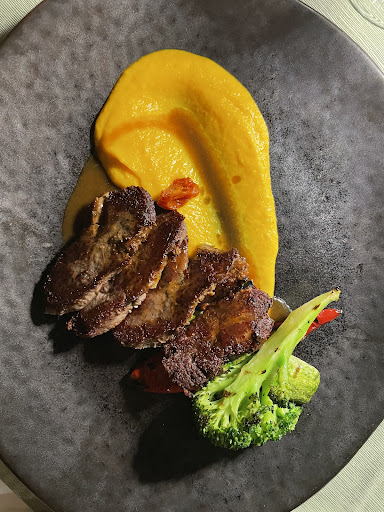 Read moreWhat a treat! My husband and I ate here after visiting ancient Olympia , and were floored by the skill of the chef. To start we ate the grilled cheese with balsamic, and also the oyster mushrooms – Both an absolute joy. The venue gave us two starting plates on the house as well; house made bread with feta, followed by tomato soup. Each were exceptional. Don’t let their simplicity fool you. For our main courses I had the sea bass, my husband the ravioli. Each dish was better than the last. My husband, who detests fish, raved over how delicious my sea bass was. For desert, we shared the (purposely!) burnt cheese cake. The restaurant poured us of some kind of sweet champagne as a parting gift.
