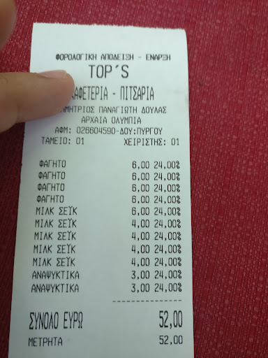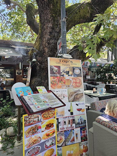 If I could rate this place, I would give it a zero! What a terrible experience! We started our Olympia trip walking the stadium and after we were in a need for some cold water. We decide to go to the Tops What a bad idea. Upon ordering the waiter tells us we must pay for our meal inside. We didn’t even receive our waters yet. My husband and I ordered an orange cake and chicken fingers and fries for our 2 yr old. The cake was most definitely frozen. When they brought it to us, the outside was hot but the inside was still icy. Our son was so excited we decided to try and keep him entertained and put some YouTube on. The waiter came up to us and screams at him for standing on the plastic chair. I understand as I kept putting him down. At some point he starts laughing and the grumpy, nasty, witch of an owner starts yelling at my toddler and said “ we don’t need this, we been here since 7am”, in Greek. My husband and I were astounded. We couldn’t believe this woman who owns a business, is screaming at my 2yr old. It got so aggressive that another customer, who is a father and a Dr , interrupted her and said,” no one should discipline anyone child.” She carried on to the point that she kicked us out! I am writing this as we have been humiliated. Greeks, do better. You work on tourist, no reason to treat anyone with...