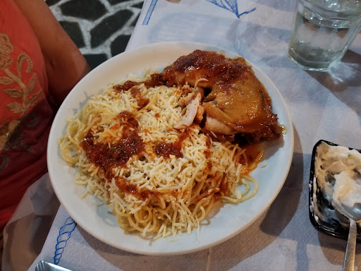 My wife and I had dinner here our first two nights on Andros and will be going back again tomorrow. The restaurant is family owned; we were here at the end of September so Maria was doing all the cooking and also waiting tables assisted by her husband. The food is traditional homestyle authentic Greek and delicious. Being the off season, the menu is limited but Maria made recommendations. The first night I had moussaka and my wife had lamb with potatoes. The second night I had roast pork in the oven with potatoes and my wife had roast chicken with spaghetti. We had a Greek salad the first night and fried zucchini the second.