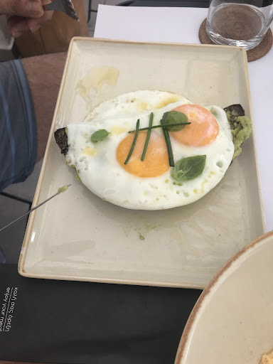 Ok food but as soon as I finished, my plate was taken away while my husband hadn't finished yet...and we were only there half an hour so why the rush, nobody was queueing so don't quite get it? Also, they only serve brunch mostly based on eggs plus other side dish, it's a pity. At dinner they have a larger selection but if you are are all day out and your house is in the mountain, it is very unlikely people will come back later on! You might as well serve other dishes then just brunch. We went for coffee somewhere else since they were in a rush it seems. A pity! Also the music a little too loud...