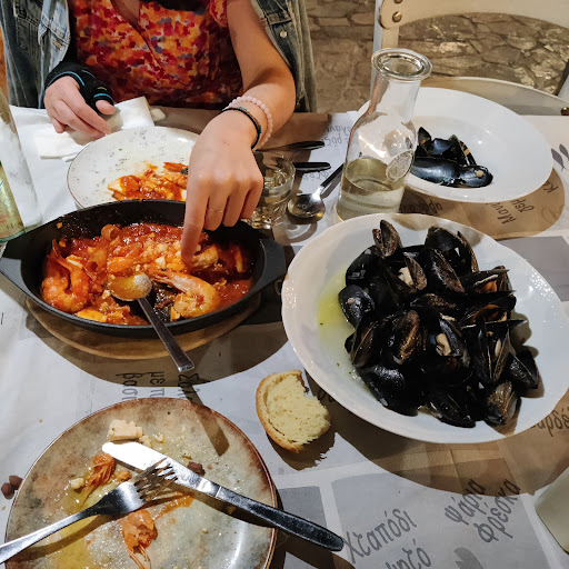 Read moreThis restaurant has everything: an enchanting view to the port and the sea, it is spacious, sunny and the food is delicious! I highly recommend pasta with salmon and pesto sauce. I could eat it everyday. 🤤 Grilled feta cheese with honey is also yummy (and I normally hate feta so this little starter is great if it managed to change my mind). Note that Mantraki Kafenes is legendary for its fried calamari as they serve the whole thing which is rare, impressive and extremely tasty. Last time we ordered it though it we got served a slightly different calamari in pieces! Apparently an addition to the menu. Ask for the whole calamari and I promise you you'll enjoy it! Overall, the menu is awesome, the staff are nice, and the dishes very flavorful! ❤️👌Go!!! Just make sure the calamari is...