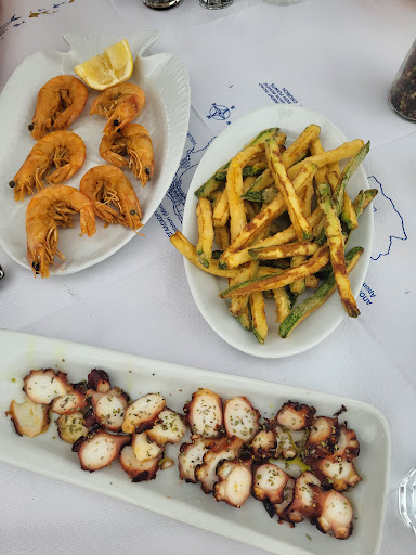 Probably one of the best restaurants in Skala. We ordered ouzo, the fried zucchini, fried potatoes, calamari and shrimp, as well as the crab salad and almyra (which is a type of greens). The portions were big and the food was flavorful. The shrimp tasted fresh, same as the calamari which was tender yet crispy. The crab salad was tangy and had pickled onions in it, a very nice alternative to the classic crab salad. The almyra was fresh, tasty, not too salty and not too oily.