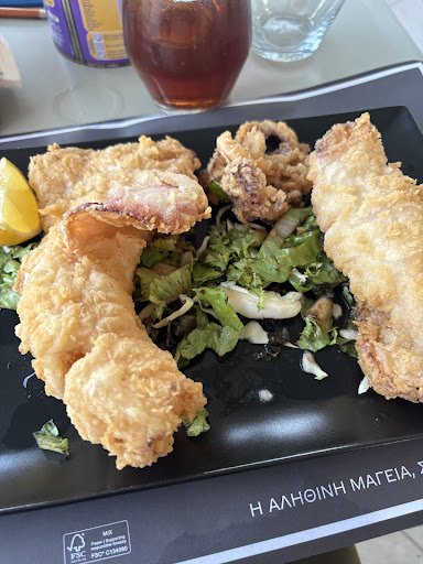 Read moreThe grilled Dorado was good 😄 but I was surprised to pay 17euro for it, it was actually not on the menu, I just asked for it without asking for the price, expecting that I would only pay like 12 euro. Since I got it cheap from another seafood restaurant in the area... you get a complimentary dessert (some fruits, or flan and a small bottle of ouzo) after which is normal in every restaurant here.. at the end we received the bill which was written in Greek, again, we were surprised to pay an extra odd amount that we didn't know where it came from, maybe it was some kind of service fee or tax that was not included in the price of what we ordered, or maybe the entrance fee for the live music that we're not aware of. We didn't bother to us anyway. We just paid and left. So for the service, it was fine.. 😃 so as I said above there was a live Greek music, which made...