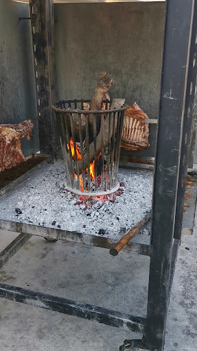 Delicious food and wonderful views! Impressive being greeted by the fire outside cooking the meat, and then the view of the lake when first stepping into the restaurant. Big portions of tasty food; we had tzatziki, bread, Saganaki, mushrooms and grilled feta cheese (also known as Bouyiourdi) as starters. Mains where special chicken (grilled chicken with fried onions & peppers, and chips), chicken souvlaki and stuffed burger (stuffed with cheese and peppers). All of the food was excellent and the portions where big (see photos!), followed by complimentary watermelon. Also recommend the Cretan draught beer, it was full of flavour. There is parking outside and just past the restaurant itself...