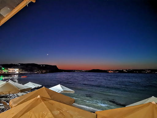 Read moreIf your looking for a nice sea view and enjoy a cold beer without the pressure to eat a full meal, this is the place! Quick and friendly service, great veiw of Almeryda Bay (my favorite place to watch the sunset) and good clean toilets! I belive they often play football on the TV inside too. This bar is clearly geared for tourists (although often full of Greeks) and is good for a quick bite to eat- not a large menu but good for Gyros, club sandwiches, waffles, ice cream, milkshakes and cocktails! They also do sunbed service where you can even eat a meal...