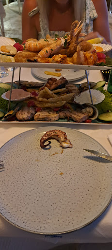 For the main course we ordered a fish plate for 2 people. The most expensive fish plate from other restaurants nearby, by 30%. We took it specifically because it included octopus. So the plate contained 1/3 of one tenacle of the octopus (see picture). When we said this is not normal for a fish plate for 2 they apologized and brought one more tenacle. The other things were good.