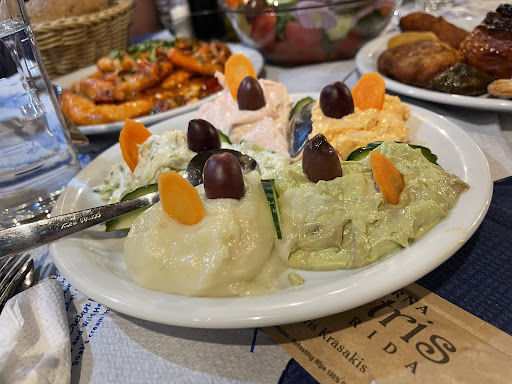 Read moreOne of the restaurants on the sea shore in the village Almirida. Here it is usually quite busy and not without reason, because the food is good and the service fast and friendly. Also the cutlery is very good, with nice sharp knifes. We ordered the lamb chops here, zucchini balls, tuna salad and mousaka. The bread that came with the food is fresh and served in one piece (not pieces of bread from other tables that have been thrown together). There is a choice from white and brown bread. We also get a free bottle of water on the table. The rosé we have ordered - a house wine - is a simple, light wine. The tuna salad contains an onion, lettuce, egg, cucumber, tomato, cabbage, delicious olives, spring onion, chives, parsley and tuna of course. The French fries are homemade and crispy. We get 4 large lamb chops with a reasonably good flavour. The mousaka is fine. After the meal we get a free (rather large) bottle of raki, and cold ice cream with delicious coconut cake.