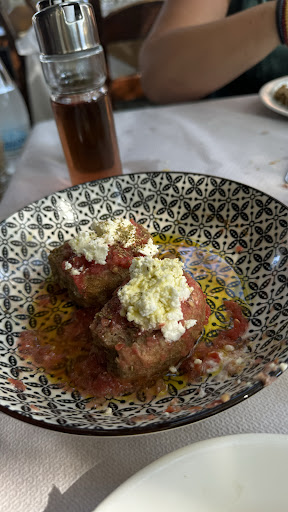 Overall, we had a good experience at the taverna, and the food was pretty good. However, since the restaurant is positioned as a traditional Cretan taverna, we had higher expectations, especially for their main dish, the ‘bifteki’ (Greek burger). The patty tasted like it was made from minced chicken, even though we ordered the standard version, which is supposed to be ground beef. When we questioned the waiter, he insisted it was a mix of pork, hence the white color of the patty, but my girlfriend and I were fairly certain it was chicken. We decided to let it go. On a positive note, their portions are huge and very affordable, offering great value for money. The atmosphere was also fantastic, especially dining under the platania trees. Perhaps we were just unlucky with...