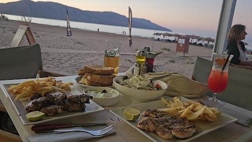 Read moreWir waren 2 mal hier. Beim ersten Mal waren wir auf dem Rückweg von Chania nach Rethymno. Wir wollten baden und vorher eine Kleinigkeit essen. Wir hatten einen griechischen Salat mit, Knoblauchbrot und Tzatziki. Dazu ein Bier und einen Cocktail. Alles war sehr lecker. Das Baden blieb uns durch die rote Flagge und hohen Wellen verwehrt. Beim 2. Anlauf hat es dann geklappt. Wir waren einen ganzen Tag hier. Schöner Sandstrand, kristallklares Wasser und vorgelagerte Steinriffe die zum Schnorcheln einladen. Dort kann man einige Meeresbewohner entdecken. 2 Sonnenliegen mit Schirm und Tisch kosten 10€. Alternativ kann man ein Pavillion mit Liegen und Tisch für 15€ mieten. Die Liegen im Pavillion haben uns besser gefallen. Sie passen sich besser an (wie ein Sitzsack). Die Santäranlagen sind in einem sehr guten Zustand. Dies würde man an einem Strandlokal nicht erwarten. Am Strand gibt es eine Umkleide und 2 Duschen. Im Anschluss haben wir ein Sunsetdinner genossen. Vorweg gab es wieder Knoblauchbrot, Tzatziki und einen griechischen Salat. Als Hauptgang gab es Lamb Chops und Hähnchenfilet. Es war wieder alles sehr lecker. Die Portionen sind mehr als ausreichend. Das Gemüse wird im übrigen direkt vor Ort angebaut. Wir können es jedem Empfehlen! Einen Raki gab es auch noch...