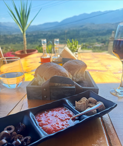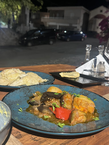 We were driving through all the little villages in the area and chose this taverna because we had heard great things and it did NOT disappoint! you can sit inside or on their large back terrace with view, or even in the front where we sat, also with a lovely view. it was a Sunday and the taverna was lively. It is run by a family and they were all so friendly and helpful. We enjoyed the taverna so much that we went back for our last night for dinner. This time we were the only guests and there were less vegan options for us, so the lovely young waiter went to his "yia yia" (grandmother) and organized that she made us fresh aubergine in the oven! it was DELICIOUS! They are all so warm and friendly and even have a cute dog that sits outside. We look forward to going back,...