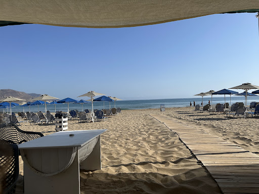 We don't recommend this place. We didn't stay on their beach, we only stopped by for lunch and let's just say that it wasn't the best decision. While the chicken souvlaki was alright (although the portion was fairly small), the mixed grill was terrible and we're not even picky eaters. It seemed like leftovers, and most of it consisted in fat and bones. On top of this, some pieces of pork were also raw to the bone. When we pointed this out, the response of the waitress was that she recently had mixed grill somewhere else and that it was much more expensive, as if this accounts for the expectation that meat should be cooked. Unbelievable!