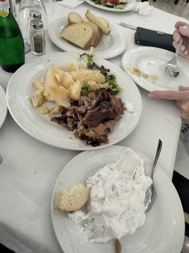 It was fine. They're apparently known for their roast pork, which was enjoyable but a bit on the dry side. The taramasalata was not as dense or as flavorful as I would have expected from a dish of this sort, but it was my first time trying it, so maybe it was done right. The saganaki was super oily...took two napkins to sop up what we could, and it was still not very tasty. The wine prices were confusing...the same wine was cheaper by the glass than the whole bottle. The salad was well done. We showed up as a bus of 40, and the kitchen was not able to bring out dishes timed well. So half the table was waiting for food while the other half almost finished thier meal. Yes, serving a bus is a pain, but I've seen it done well by other restaurants. So overall, mostly...